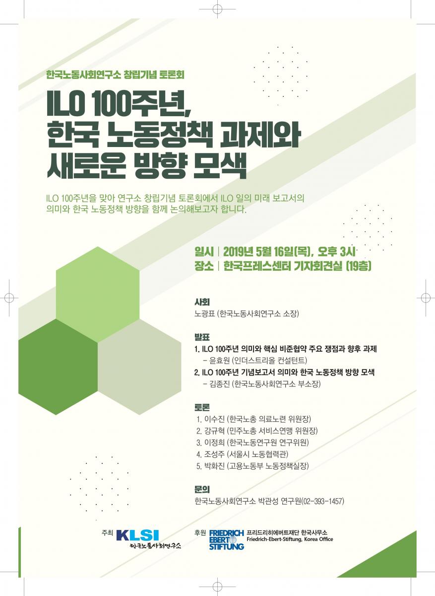 [한국노동사회연구소 창립기념 토론회] 'ILO 100주년, 한국 노동정책의 과제와 새로운 방향 모색' 토론회 안내 및 자료집