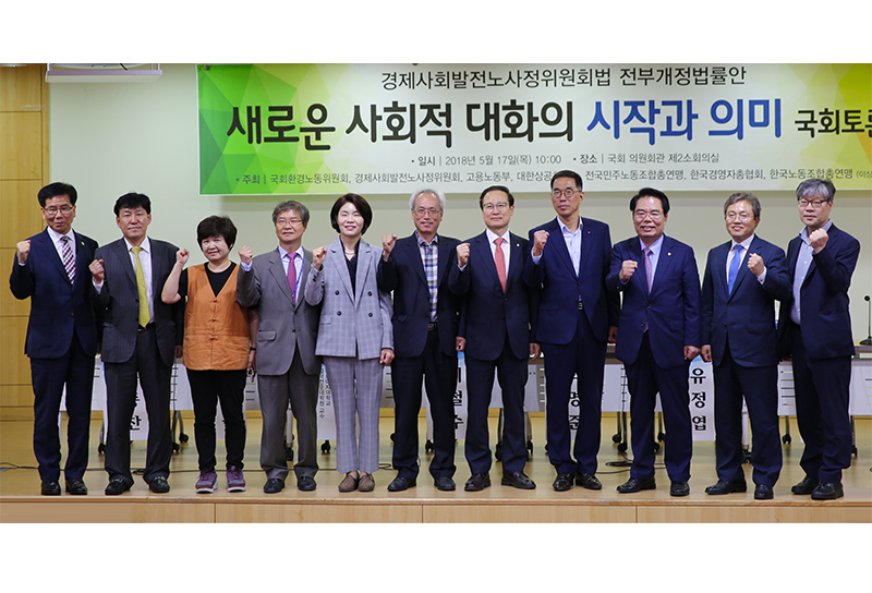 하지만 국가 수준의 사회적 대화를 다시 가동시키기 위해선 지난 20년간 수많은 문제들이 제기됐던 노사정위원회의 재정비가 필요했다. 2017년 8월 문재인 대통령이 문성현 노사정위원장을 임명하면서 개편 작업은 시작됐다. 2018년 1월 노사정대표자회의를 소집해서 8년 만에 양대노총이 만나 사회적 대화기구 개편논의를 시작하고 나서 사회적 대화는 급물살을 탔다. 4월 23일 제3차 대표자회의에서 기구개편의 주요 내용에 노·사·정 주체가 합의하고, 그 합의내용을 1개월 만에 신속하게 국회에서 입법하여 2018년 6월 12일 시행됐다.1)