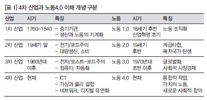 개념적으로 4차 산업혁명은 소위 ‘4차 산업’에서 출발했다고 봐야 한다. 4차 산업의 어원은 2000년대 초 독일 정부가 실시한 ‘제조업 강화 연구’로부터 나왔다. 그 사이 2007년과 2008년 세계금융위기를 겪으면서 실물 경제의 중요성이 재인식되었고, 2011년 하노버 산업박람회에서 ‘산업 4.0’(industry 4.0)이라는 개념이 처음으로 공론화되었다. 이듬해인 2012년 독일 정부에 권고안이 제출되면서 본격적으로 추진된 것이다. 이후 독일은 각 하위 산업과 부문별로 4차 산업 준비를 노사정이 함께 모색하고 있다. ‘공공 4.0’, ‘서비스 4.0’, ‘유통 4.0’, ‘금융 4.0’, ‘보건 4.0’ 등과 같은 형태다.