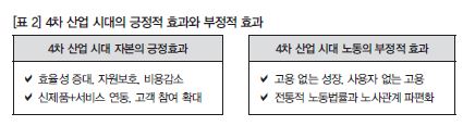 다보스포럼의 4차 산업혁명 내용을 비판적 문제의식 없이 받아들여 각종 자료와 보고서들을 발간하기 시작했다. 정부의 4차 산업혁명 보고서에서도 2030년까지 172만 명의 고용 변화가 있을 것이라 전망하고 있다.
