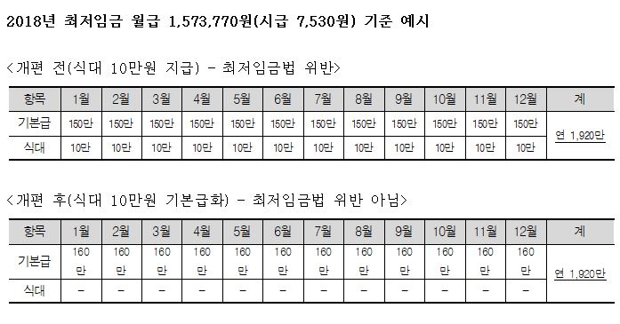 2018년 적용 최저임금이 7월15일 심의․의결 되었다. 그런데 불과 사흘 후인 7월18일 대구광역시를 시작으로 최저임금인상을 무력화시키려는 토론회, 교육이 시도되고 있다. 식대나 교통비, 분기별 정기상여금 등 최저임금에 산입되지 않는 임금을 기본급 확대 명분으로 폐지하거나 축소하는 것은 노동조건을 불리하게 변경하는 것이다. 따라서 노동자의 동의를 구하지 않고 사용자가 일방적으로 개악하는 것은 불법이다. 그러나 노동조합이 없는 사업장은 고용노동부에 진정하는 것 외에 대응이 불가능하다. 또한 상여금총액을 그대로 유지하면서, 이를 분기별 지급에서 월별 지급으로 지급 방식을 변경 하는 것은 노동조건에  불리한 변경이 아니기 때문에 노동조합의 임․단협 투쟁 외에는 대응이 불가능하다.