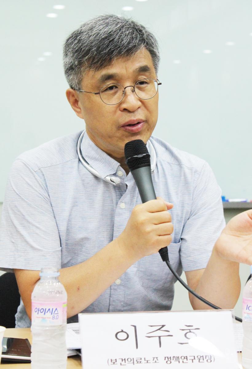 이주호) 직무급에 대해서 보건의료노조 내부에서는 일단 부정적 입장입니다. 참고로 이재명 시장이 성남의료원에 직무급제를 도입해 보자고 제안해 연구가 진행 중입니다. 노조가 이에 대해 반감이 많다 보니 직무기준 자체를 노사합의로 만들고 갱신할 때도 항상 노사가 합의하는 방안이 검토되고 있습니다. 문제는 병원 직종이 총 60여 개가 넘습니다. 직무가치를 두부 자르듯이 해서는 그 기준에 대해 당사자들의 합의와 동의를 얻기가 쉽지 않을 것입니다. 이와 같은 근본적인 어려움이 있지만 초기업 산별표준임금체계 수립이나 임금 격차를 줄이기 위해서 보건의료노조도 이를 무조건 반대하기보다는 다양한 대안을 모색하고 있습니다.