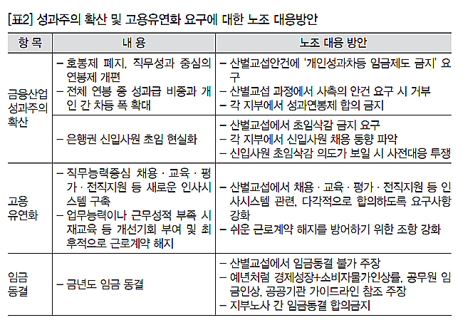 또한 금융노조는 사측의 요구에 대하여 아래와 같이 대응하였다([표2]).