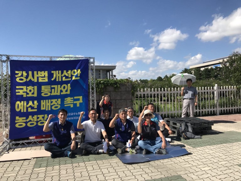 그러나 협의체의 합의안이 주목을 받음에도 한교조는 안심하지 않고, 국회에서 또 다시 개악안이 나오거나 관련 예산이 배정되지 않아 편법이 횡행하는 사태를 미연에 방지하고자 협의체 합의안 발표 다음날인 9월 4일부터 국회 정문 앞에서 무기한 철야노숙농성을 이어가고 있다. 이 농성은 국회 교육위원회에서 법안이 통과될 때까지 진행될 예정이다. 농성을 시작 한 지 한 달을 조금 넘긴 10월 10일 이찬열 의원(국회 교육위원장, 바른미래당 의원)이 민주당과 민주평화당의 주요 의원들과 함께 협의체의 합의법안을 거의 그대로 담은 ‘고등교육법일부개정법률안’을 대표 발의 하였다. 그렇지만 강사법 사태의 원죄가 있고 협의체를 만들어 합의안을 가져오라던 자유한국당 의원들은 정작 합의안이 제출되었음에도 단 한 명도 이 법안에 서명하지 않았다. 긴장은 계속되고 있다. 국정감사 이후 11월 초순과 중순에 국회 교육위원회가 열릴 것으로 예상되는 데 이 때 자유한국당이 어떠한 태도를 보이느냐가 중요하다. 국회 정문 앞 농성이나 여타 투쟁이 지속적으로 필요한 이유이다.