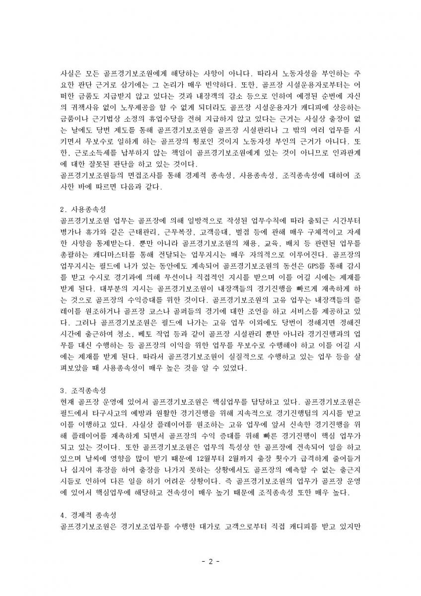골프경기보조원의 노동실태와 정책과제