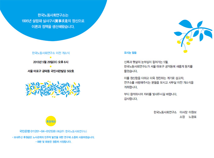개소식은 한국노동사회연구소 사무실에서 열립니다.